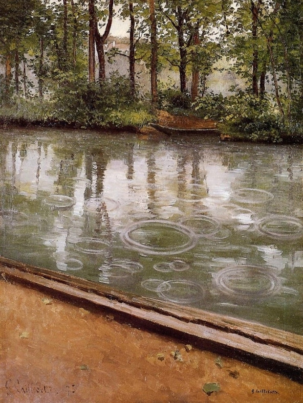 잔잔하게 내리는 안개비가 파리의 거리를 촉촉하게 적십니다. 습도를 이처럼 그림으로 절묘하게 표현해낸 화가가 또 있을까요? 손을 대면 물기가 뚝뚝 묻어날 것만 같은 그림이죠. 이런 날 아시죠? 눈에 보이지도 않을 만큼 가는 빗방울이 내리는 날, '비가 오는 건가?' 헷갈려서 바닥에 고인 물 웅덩이를 유심히 보게 되는 그런 날..