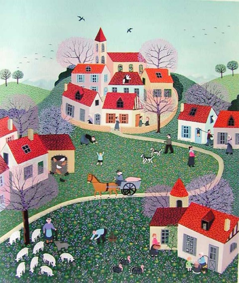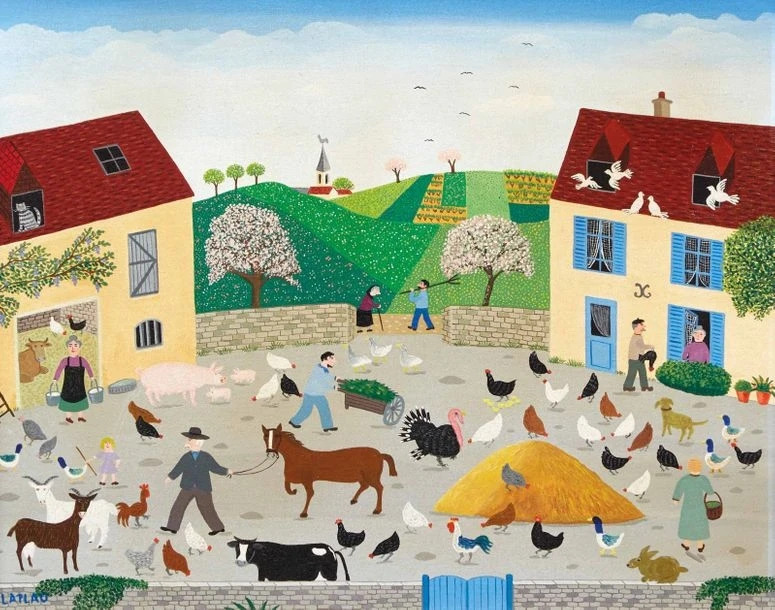 라플라우는 이처럼 자신이 어릴 적 보고 자랐던 시골 마을을 포근한 기억 그대로 그림에 담았다. 어디선가 은은하게 댕댕댕- 종소리가 울릴 것만 같은 여기는 생생한 삶의 터전이자 매일매일 크고 작은 축제의 현장이다. 이곳에서 그들은 일하며 살아가고, 기뻐하고, 웃고, 행복해한다.