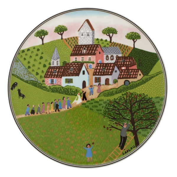 이 접시들을 보자마자 떠올린 건 '그랜마 모지스'라고 불리는 모지스 할머니의 그림들이었다. 모지스 할머니는 전원적인 시골 마을의 풍경을 주로 그렸는데, 그 당시의 소소한 일상을 일러스트풍으로 아기자기하게 표현하여 보기만 해도 따뜻하고 즐거워지게 된다. 그러나 그릇 속 그림들은 모지스 할머니가 아닌, 프랑스의 민속화가 제라드 라플라우(Gerard Laplau, 1938-2009)의 작품이었다.