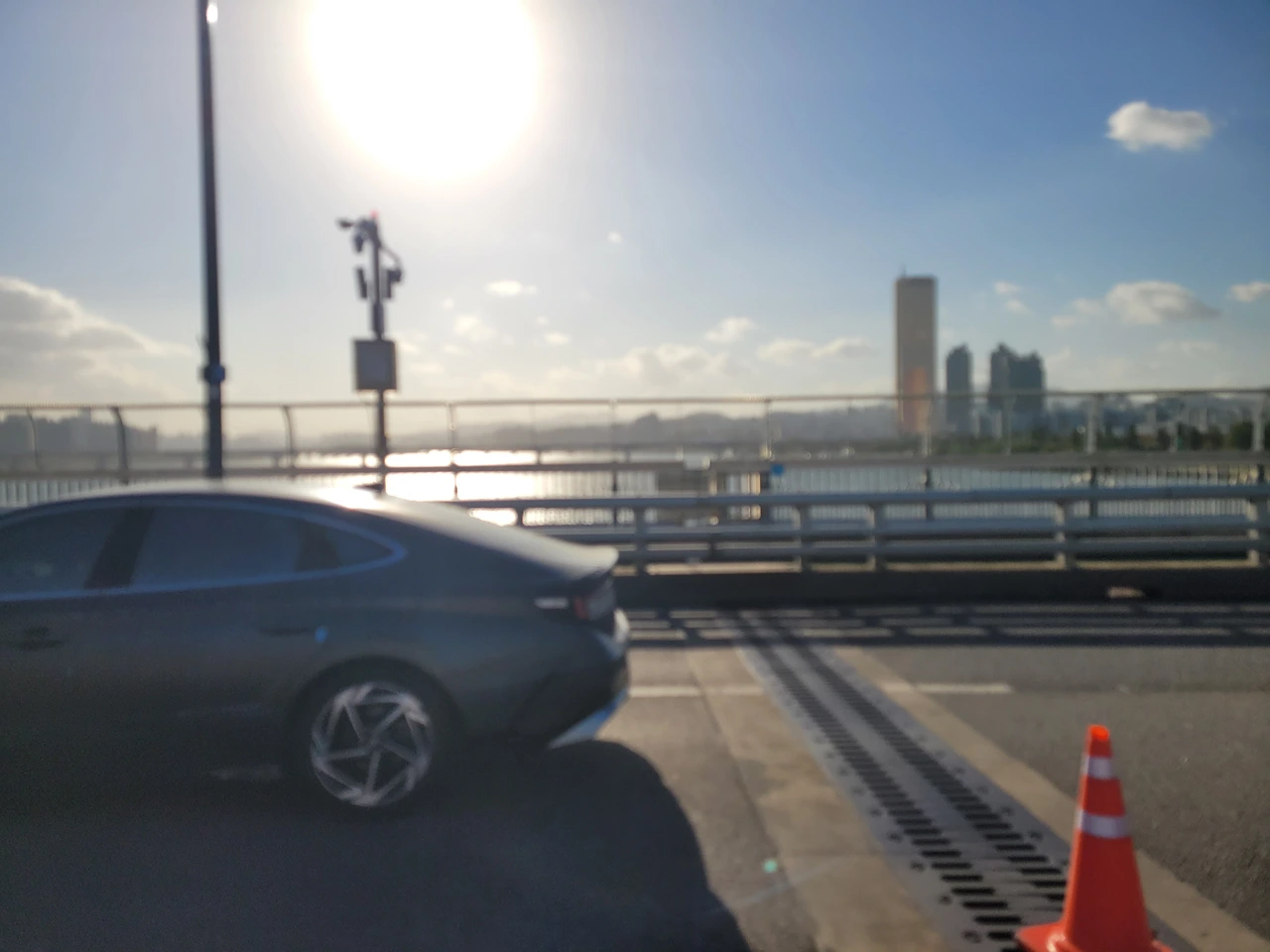 한강 위 다리를 달릴 때 기분이 정말 좋았음