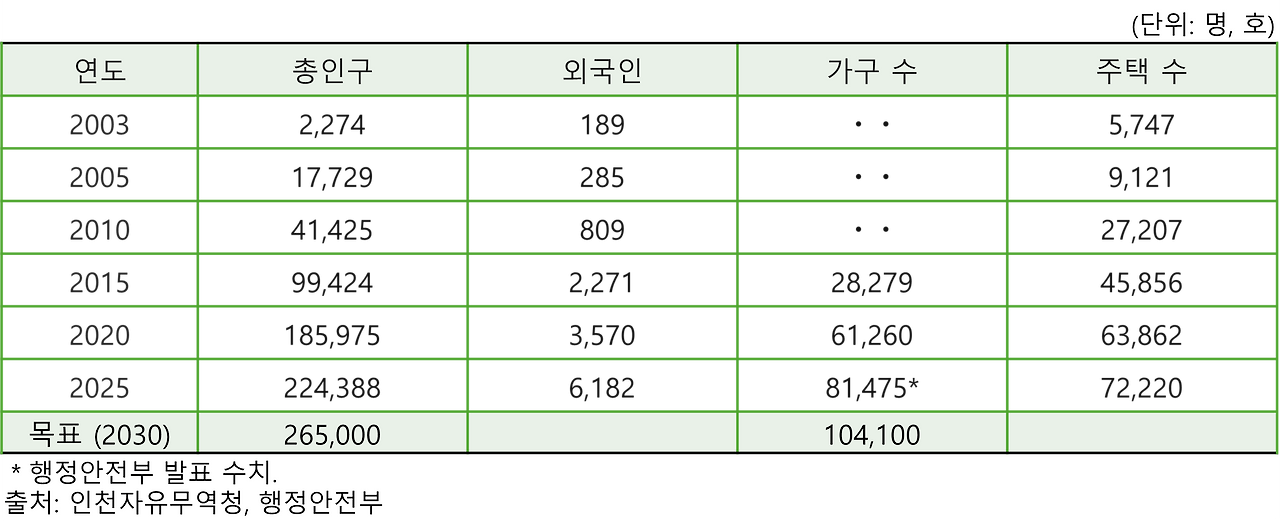 이 선택의 결과는 숫자로 증명됩니다. 2003년 불과 2,274명이었던 인구는 2025년 현재 224,388명으로 무려 100배 가까이 폭발했습니다. 하지만 이 비정상적인 팽창은 기업 유치가 아닌 '아파트 공급'에 의해 주도되었습니다.
