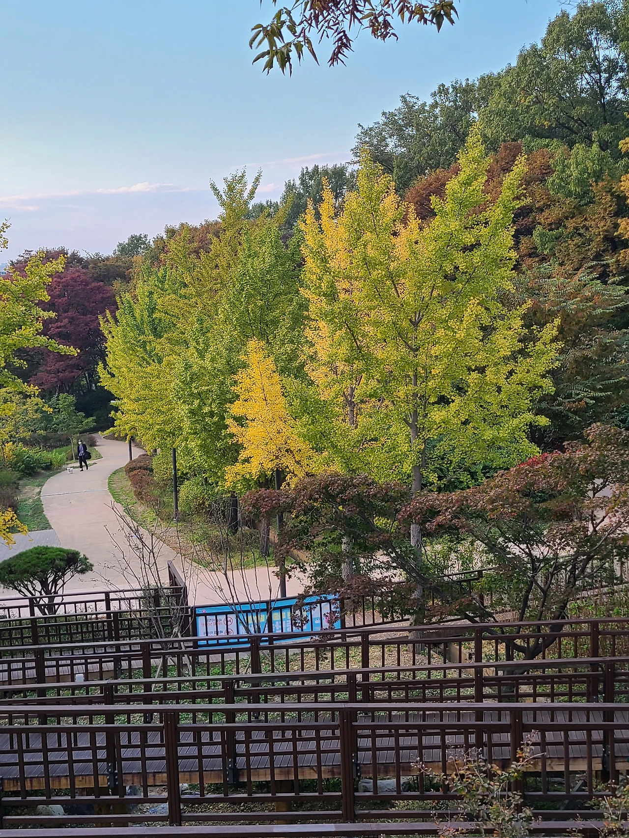 가을이 깊어 가자 은행 잎이 노랗게 물들어 가고 있다.