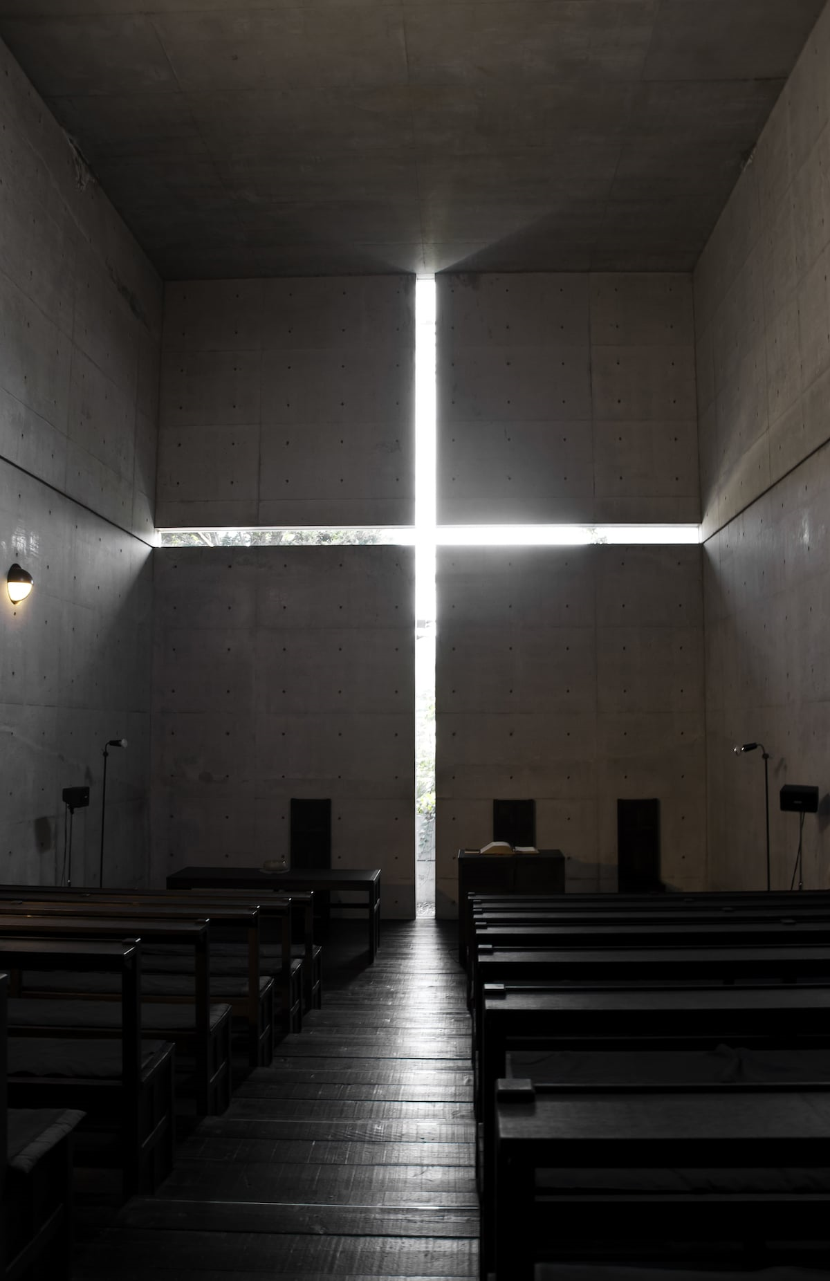 안도의 건축에서 빛은 주인공이다. '빛의 교회'에서 콘크리트 벽면에 새겨진 십자가 형상의 틈은 실내로 빛을 끌어들이며 신성한 분위기를 자아낸다.