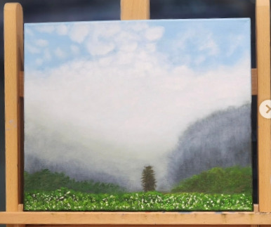 그렇게 4개월. 안개 낀 산, 푸른 하늘, 초록 들판. 서툴지만 제 손으로 첫 유화 작품을 남기게 되었습니다.