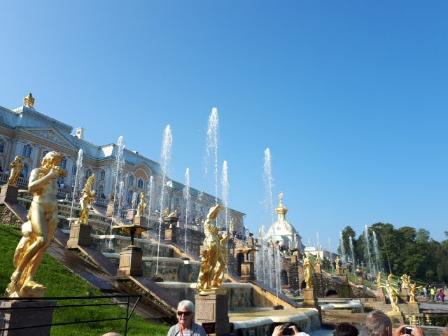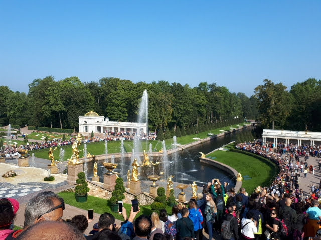 둘째날 배를 타고 이동하니 황제의 여름 궁전 페테르고프 궁전의 유명한 분수 정원이 나온다.