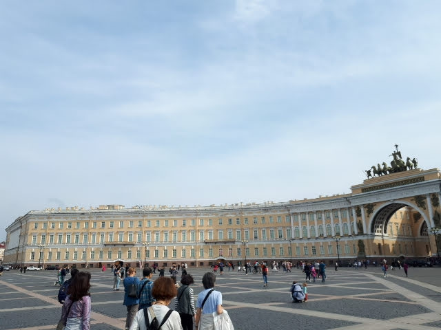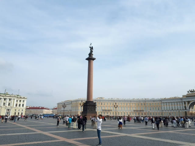 페리를 타고 도시로 돌아온 우리는 겨울궁전 광장과 알렉산드르 원주를 방문했다.