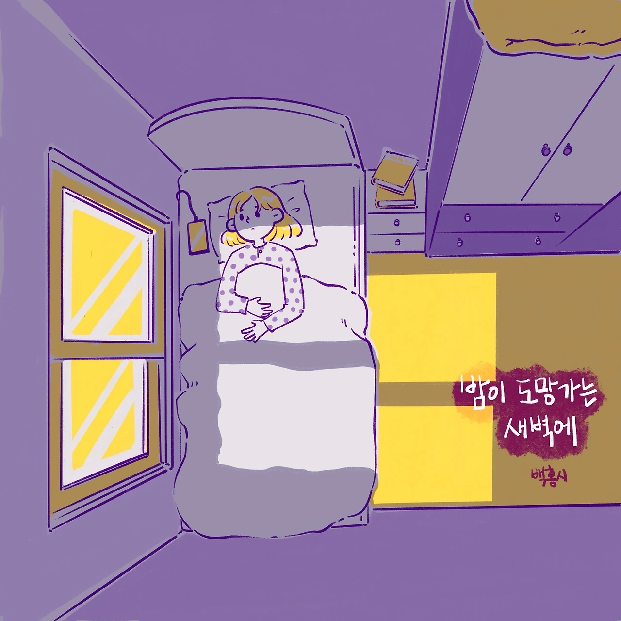 밤이 도망가는 새벽에 홀로 깨었네.