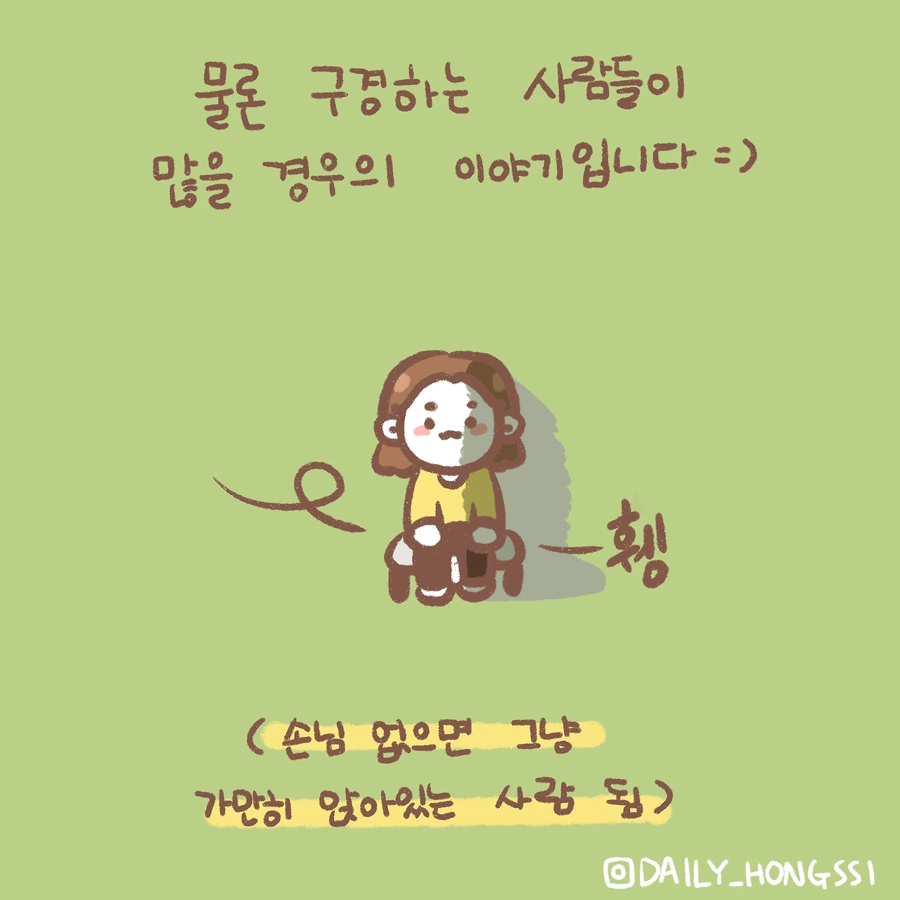 일상툰을 그리고 짧은 글도 씁니다. <문득생각>, <남의 집 귀한 자식>, <서른 둘, 백수인데요.>, <디어다이어리> 등 짧은 일상툰을 주로 그렸습니다.