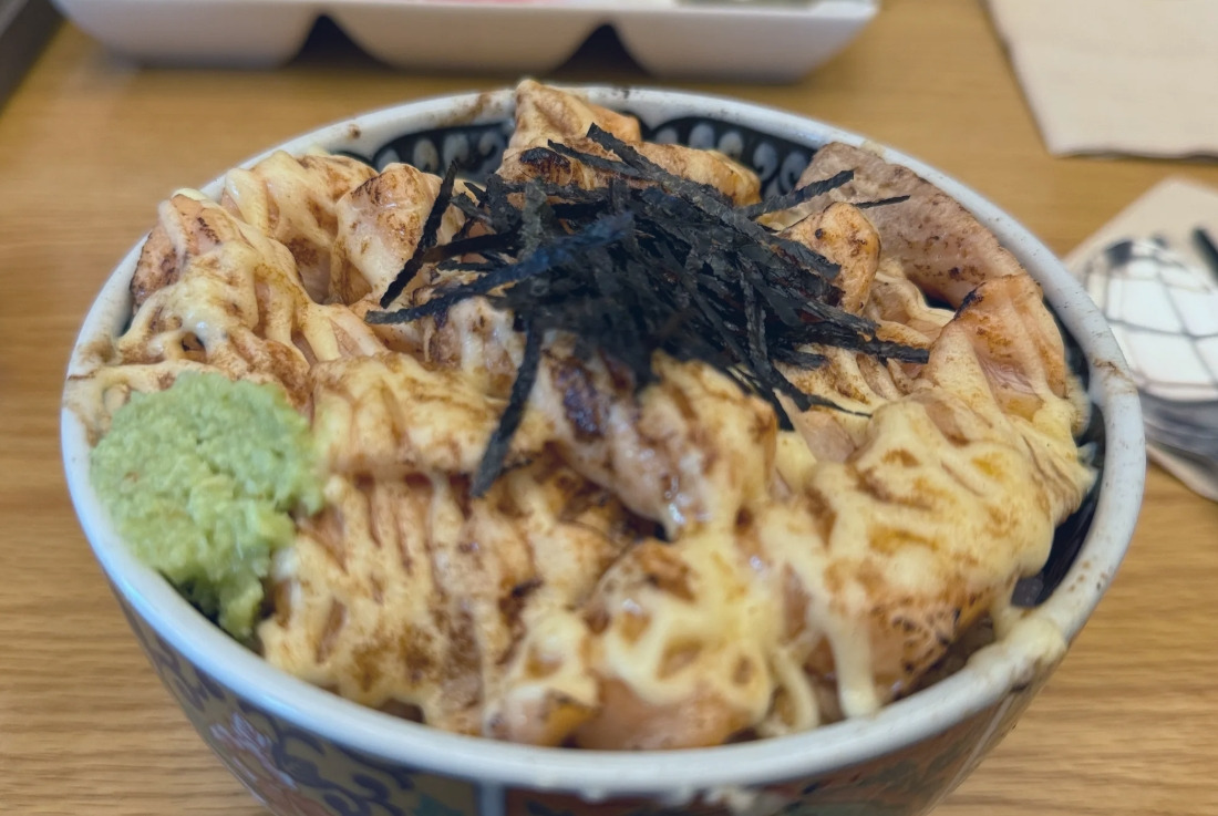 정갈하게 나오는 연어 덮밥과 따뜻한 국물.