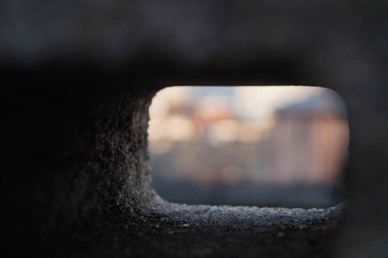 한 번은 딸아이가 까치발을 들고 애쓰는 모습이 안쓰러워 시멘트 구멍 사이로 보라고 했더니 그것이 근사한 액자가 되어주었다. 액자 사이로 한옥 기와지붕들이 한 눈에 들어온다. 그 뒤에 커다란 건물은 대동세무고등학교이다.