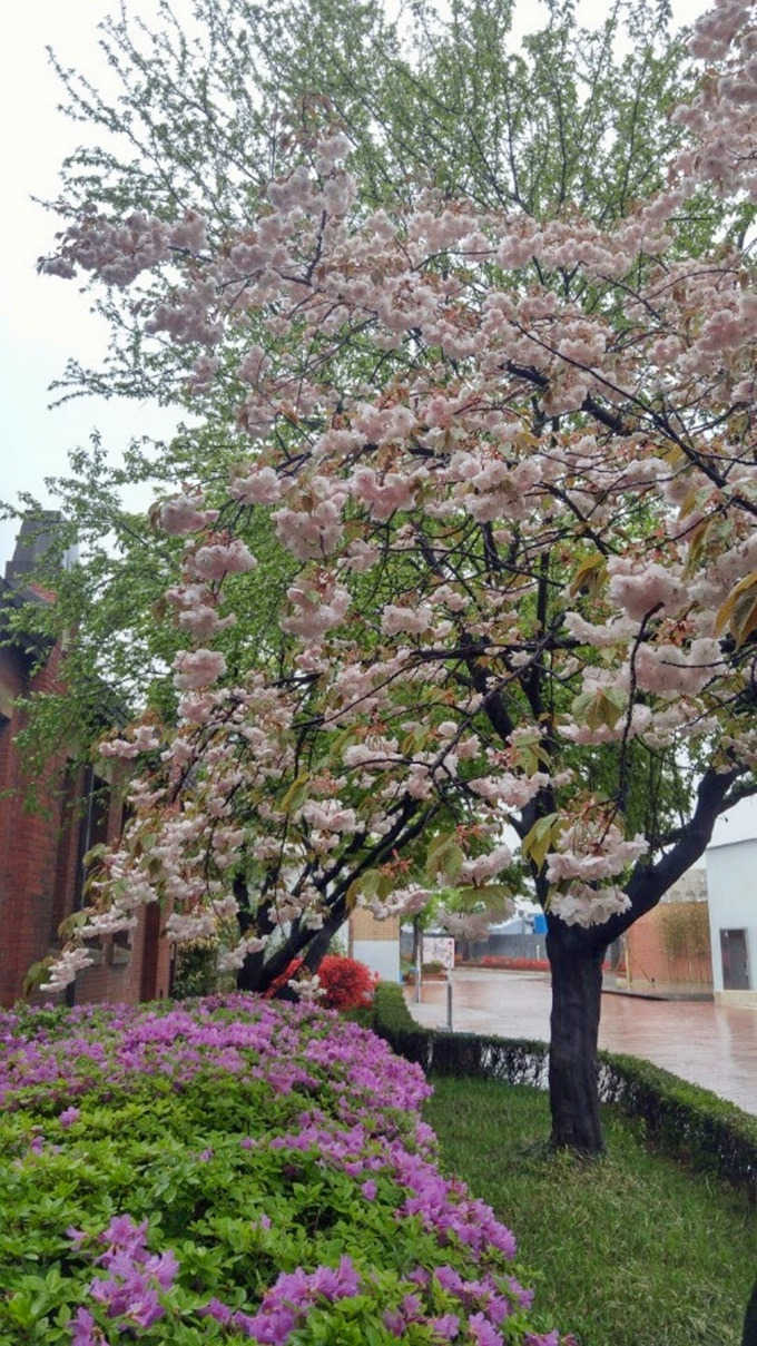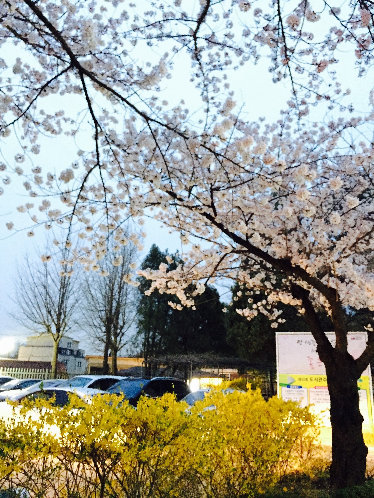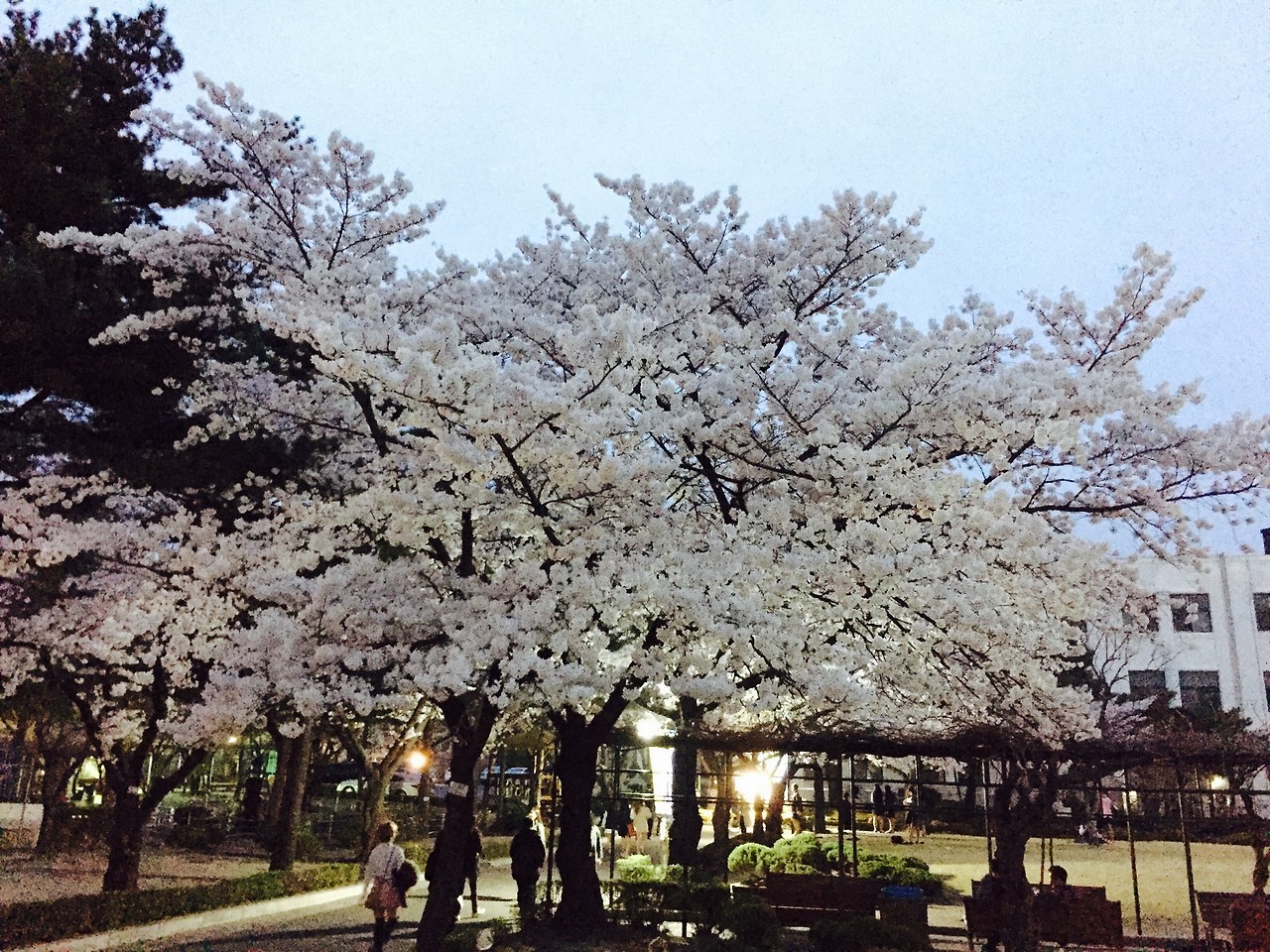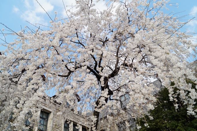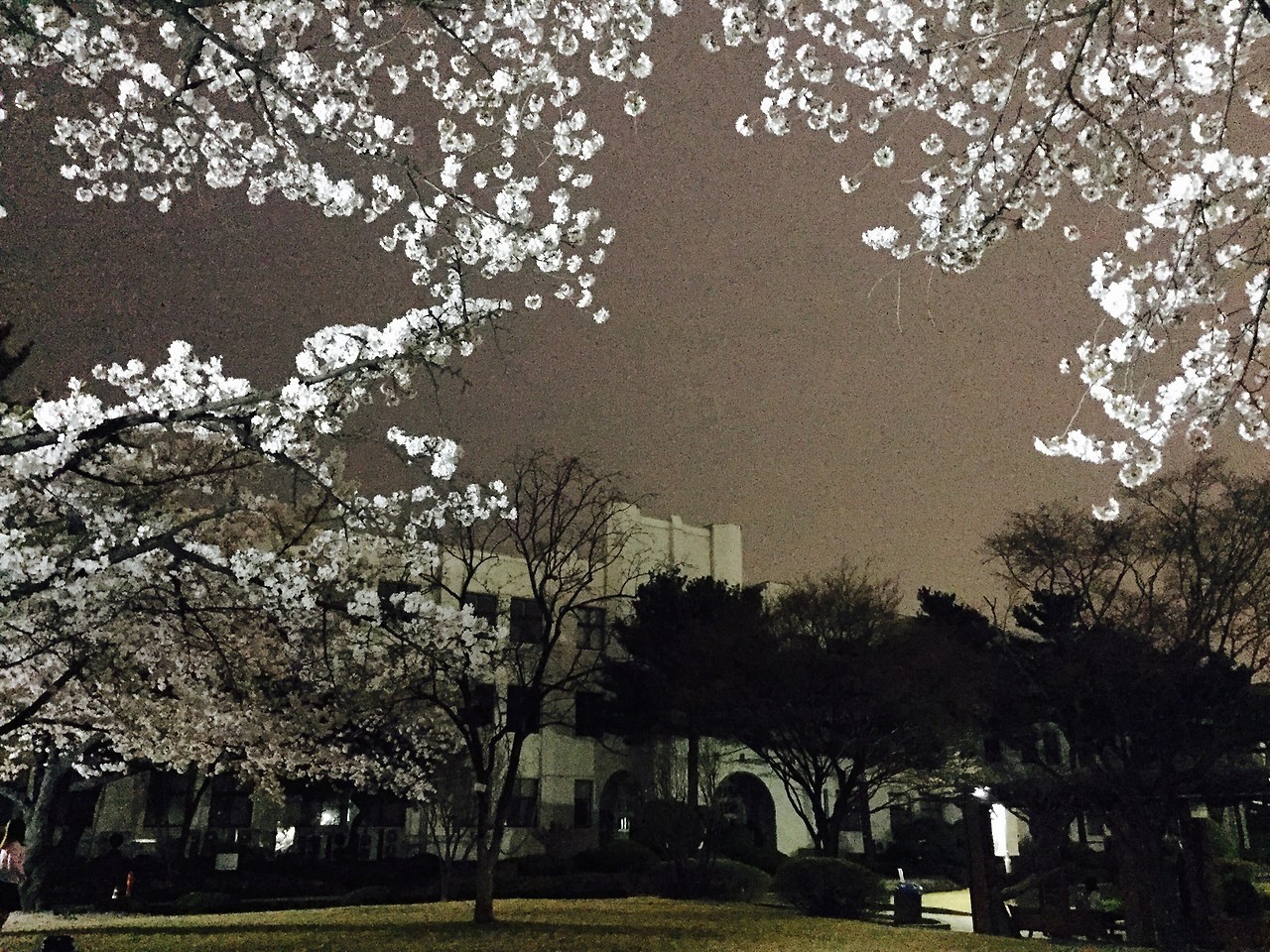 사실 중앙고에 벚꽃나무가 즐비하지는 않다. 그럼에도 매우 인상적이었던 것은 본관 앞에 위치한 목련나무 한 그루와 벚꽃나무 한 그루. 마치 수양버들을 연상케 하는 우람한 벚꽃나무의 화려한 자태는 물론이고, 양옆으로 늘어진 벚꽃 역시 화려하기 그지없다.