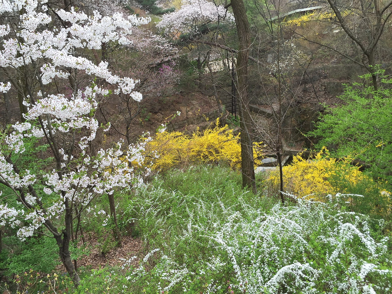 늘 사람들로 붐비는 삼청동을 조금만 지나면 한적하게 걸을 수 있는 삼청공원으로 들어설 수 있다. 서울시가 선정한 아름다운 단풍길 명소로도 지정된 삼청공원은 봄나들이하며 산책하기도에 좋은 공원이다. 1940년대에 조성된 공원이기 때문에 녹음이 짙고 1 급수에서만 산다는 도롱뇽이 서식할 만큼 서울에서 보기 힘든 청정지역이다.