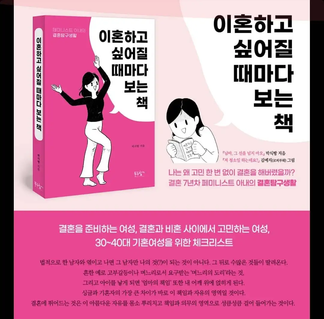 나는 왜 고민 한 번 없이 결혼을 해버렸을까?결혼 7년차 페미니스트 아내의 결혼탐구생활세상에서 가장 가까운 타인, 부부. 이들은 가장 가깝기 때문에 가장 많이 부딪치게 되