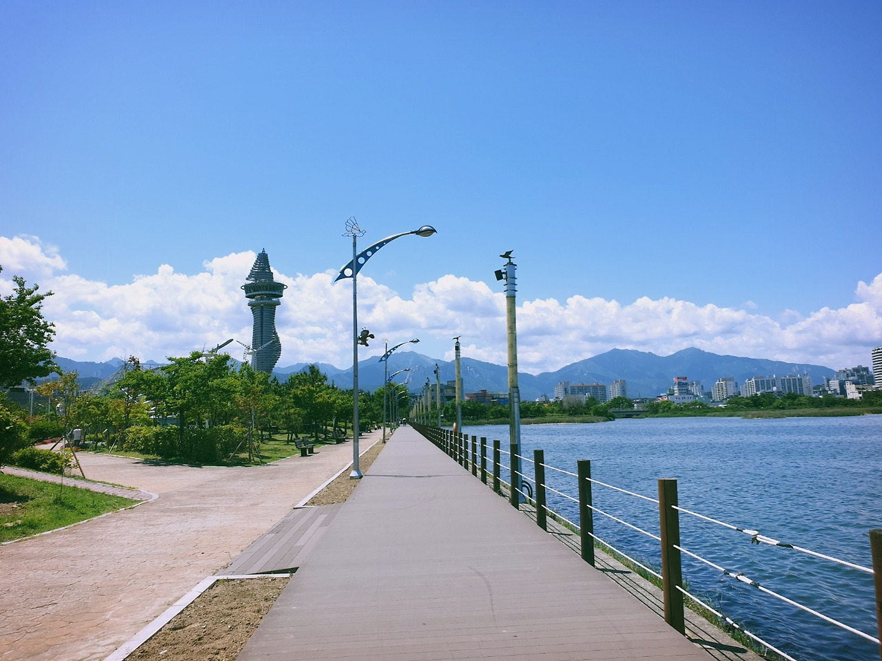이 곳이 유명한 집인 줄은 알았지만 건물도 새로 올린 지 얼마 되지 않아 넓고 전망, 편의시설도 잘되어있어 가족단위로 오기에 좋겠다는 생각이 들었다. 가격은 저렴하지 않았지만 이번 속초여행에서 제일 기대했던 음식이었기에 망설임 없이 물회를 시켜 첫 식사를 했다. 현지인만 아는 오래된 맛집 같은 느낌을 기대한다면 실망할지도 모르겠지만 나에게는 비주얼도 맛도 건물 전망도 합격이었다. 식사를 하며 청초호 전망을 구경할 수 있었는데 날씨가 좋기도 했고 근처 공원이 새로 지은 지 얼마 안 됐는지 꽤나 예쁘게 꾸며져 있었다.
