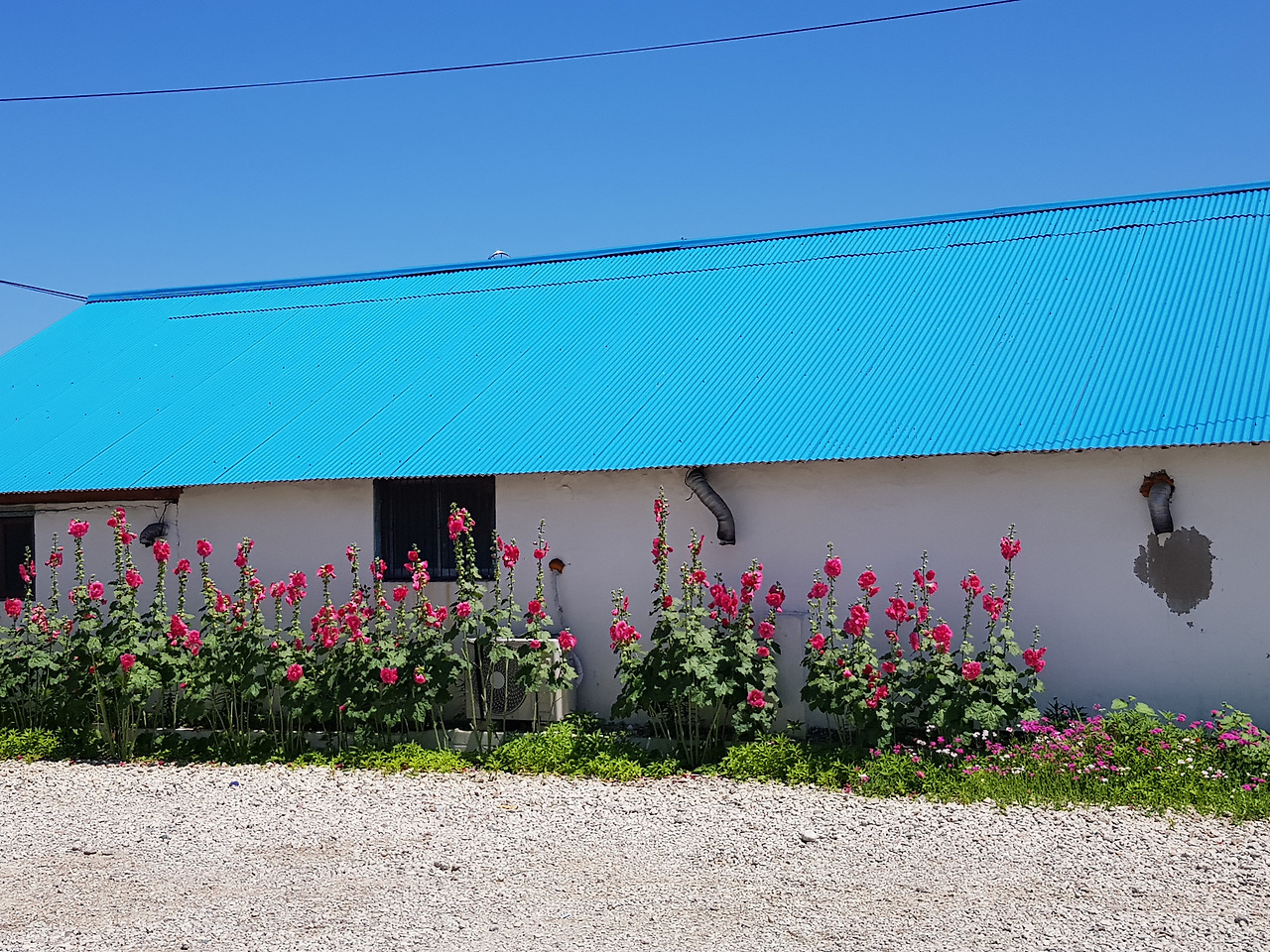 이곳을 나와 근처 밀크티 맛집을 찾아 걷기 시작했는데 걷는 길에 만난 파란 지붕의 식당과 담벼락의 꽃이 푸르른 여름을 느끼게 해 주었고 아직도 이사진을 보면 그날의 청량했던 여름 느낌이 떠오른다.