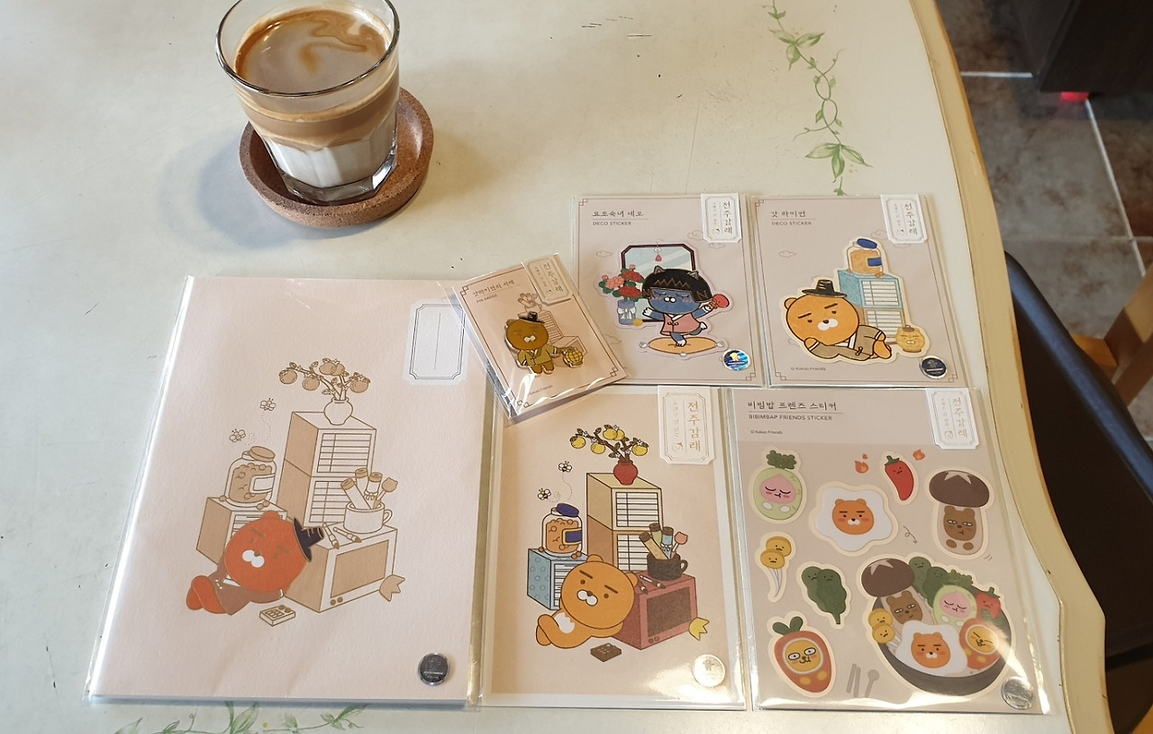커피를 마시다 친구와 나는 아까 카카오 샵에서 산 물건들을 주섬주섬 꺼내놓고 인증사진을 찍으며 왠지 모를 뿌듯함을 느꼈다. 쓸 데는 없지만 보기만 해도 귀여우니까! 그거면 충분하지 않을까?