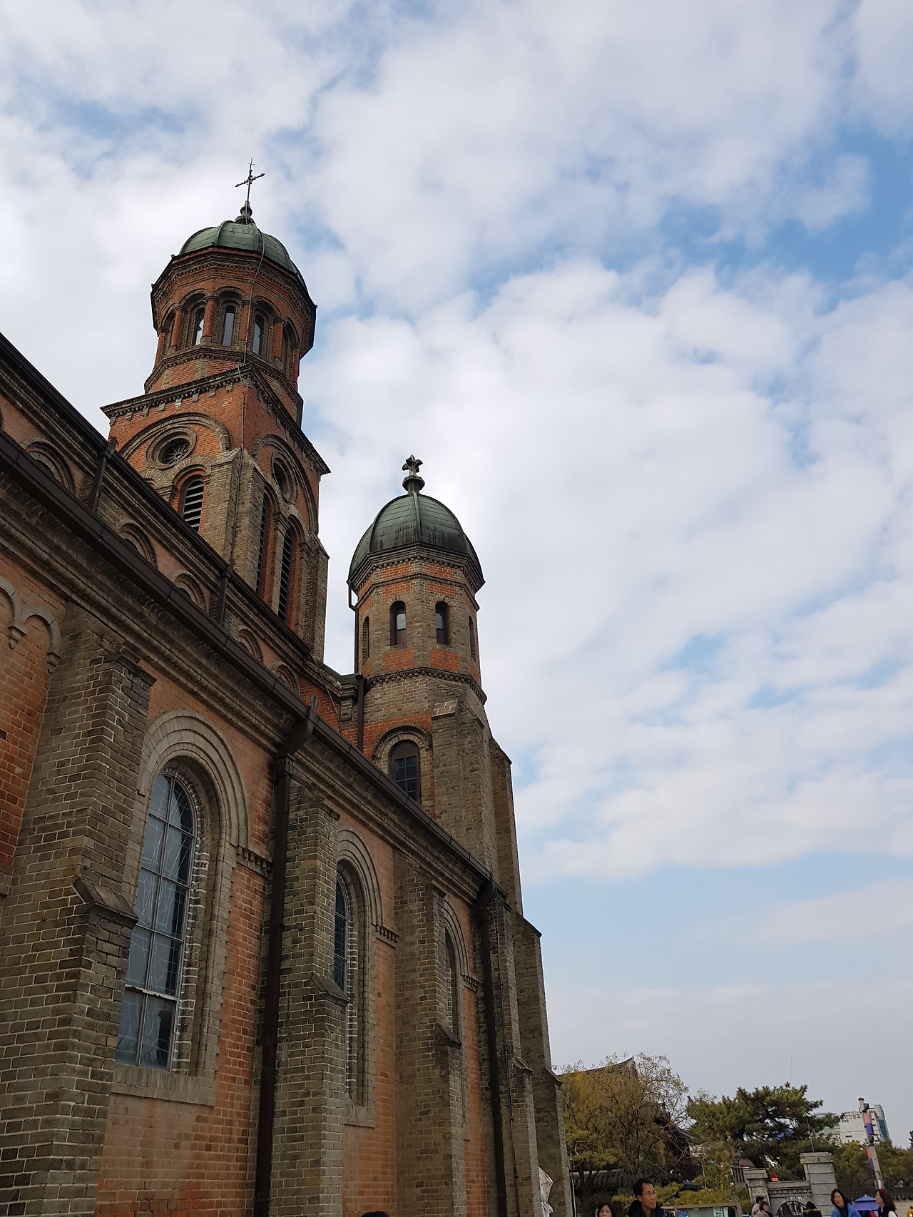 그 어느 때보다 진지하게 카카오 샵을 구경한 뒤 엽서와 스티커를 사서 한옥마을 초입의 전동성당으로 발걸음을 옮겼다. 12월 초였지만 날씨는 제법 추웠고 추운 날씨 탓에 하늘은 제법 파랗게 물들어있었다.