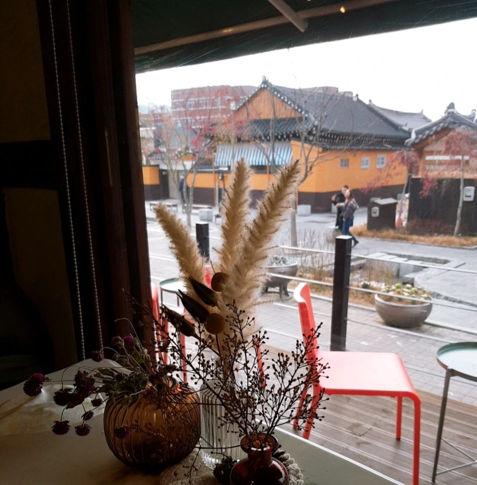 성당에서 나와 본격적으로 한옥마을 거리를 이곳저곳 돌아다니다 찾은 아기자기한 느낌의 작은 한옥카페에 들어가 커피 한잔을 마시며 창밖을 구경하며 추위로 움츠러들었던 몸을 잠시 녹였다.