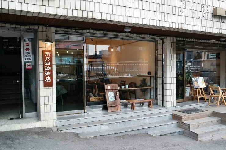 신촌과 홍대 사이에는 일본인 부부가 운영하는 작은 카페, 아메노히 커피가 있다. 아메노히 커피란 비 오는 날을 의미하는 일본어 "아메노히(あめのひ [雨の日])" + 커피이다. 비 오는 날의 커피 정도 되겠다. (실제로 방문해보면 비 오는 날에 잘 어울리는 분위기다.) 바 테이블을 비롯해 12석 남짓하는 공간이고 고요하고 따뜻한 느낌이다.
