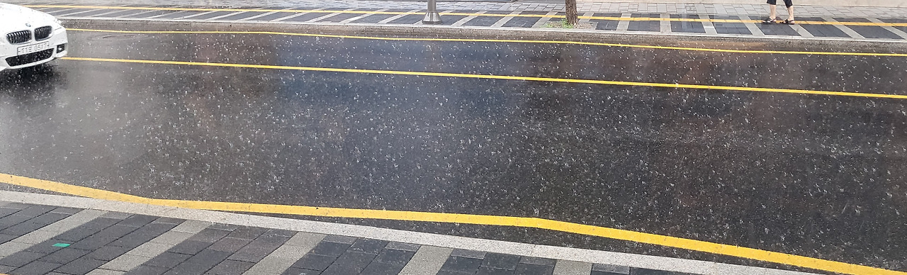 카페에 들어가니 하늘에 구멍이 뚫린듯 비가 쏟아졌다. 통유리창 가득 메우고 아래로 떨어지는 물방울들을 응시하다보니 30분이 훌쩍 흘러간다. 지휘자의 연주에 맞춰 악기연주자들이 손을 움직이듯, 매장에서 흘러나오는 샹송에 맞춰 손님들이 발 까딱거리고 창밖 태극기가 펄럭거리는 것 같다. 피식 웃음이 나왔다.