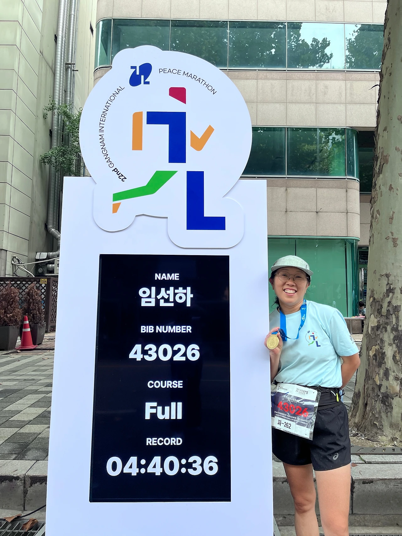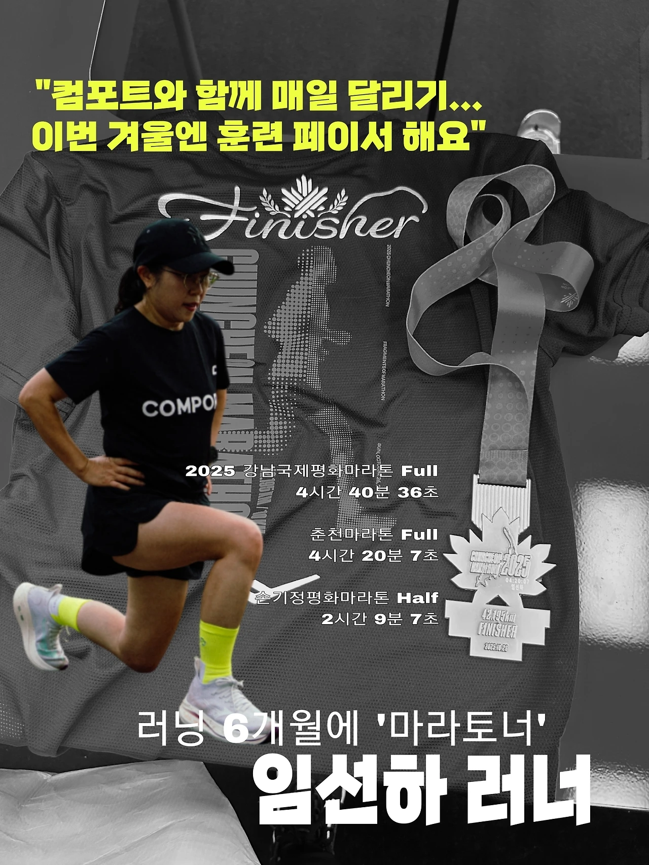 그러게요. 마블런 하프, 강남국제평화마라톤 풀, 어스마라톤 하프에 이어 춘천마라톤 풀코스도 완주했어요.(인터뷰 시점엔 마블런을 앞두고 있었다.)