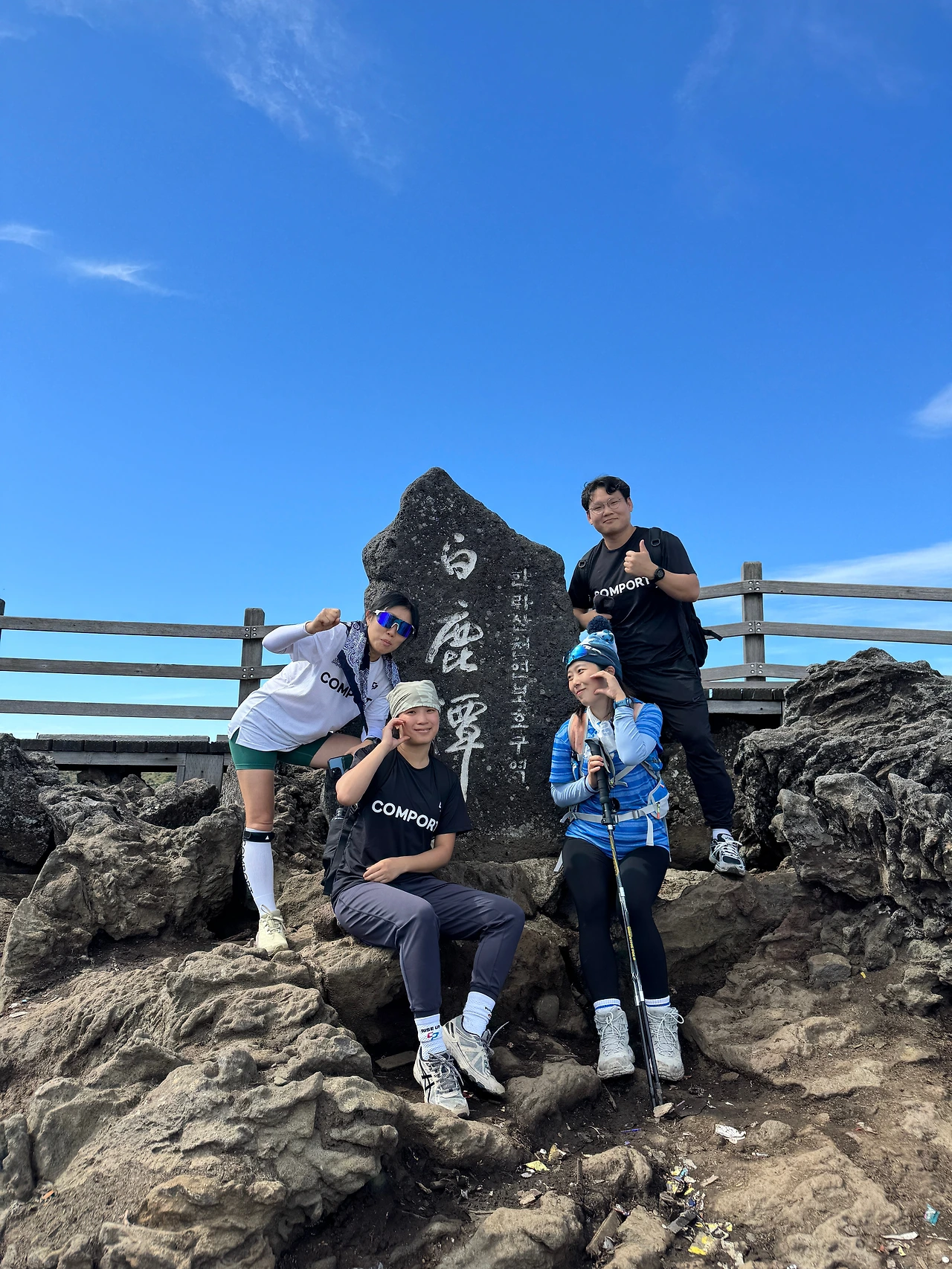 필자(오른쪽 아래)와 임선하 러너(맨 왼쪽)는 지난 9월 29일 제주 한라산을 함께 등반했다.