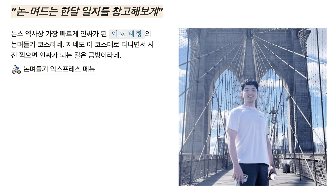 그런데 현곤이 소개로 실제로 가보니까 너무 좋더라. 그때는 실명을 써서 나에 대해 되게 디테일하게 소개했지.