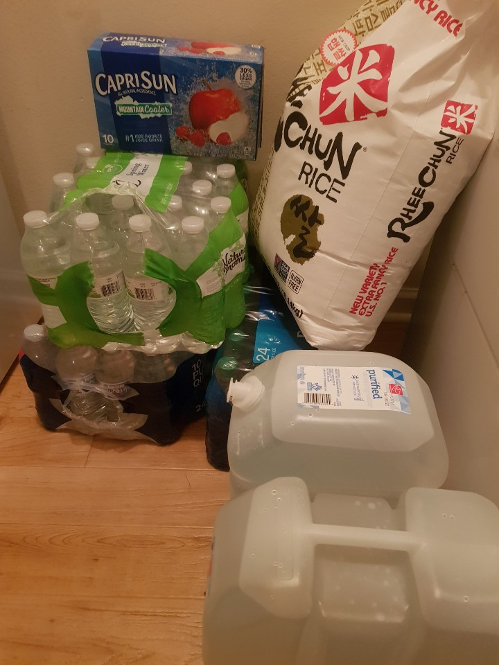 한국에서도 한반도 정세가 위태로울 때 물과 라면, 가스버너, 휴대용 라디오 등을 사뒀던 1인으로써 코로나19의 갑작스러운 습격에 대비 안 할 리 없다. 20kg 쌀을 사고, 물을 여러 통 사놨으며 참치나 스프 등 캔 종류의 비상식량을 부엌 서랍장에 채워놨다. 라면은 아이들이 먹지 않아 사지 않았다. 대신 큰 사이즈 카레 가루와 김 등을 샀다. 미국인들은 라면 대신 파스타 면과 소스를 사는 것 같았다.