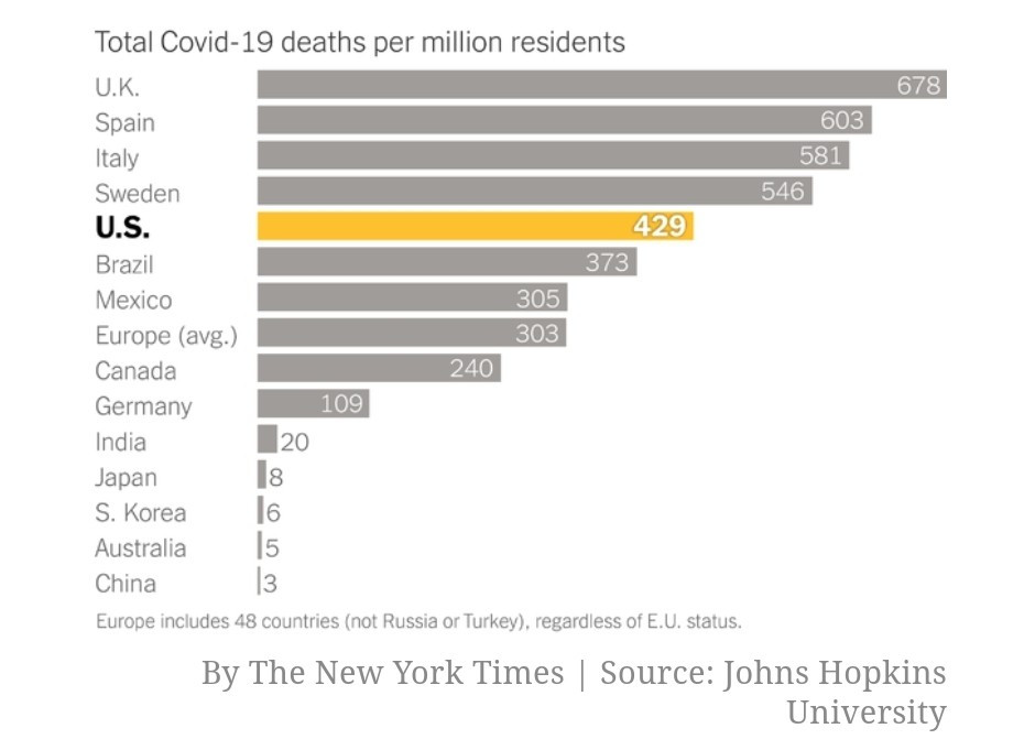 미국 내에서 마스크에 대한 인식이 바뀌지 않는다면 백약이 무효할 듯하다. 하긴 대통령조차 마스크를 쓰지 않는 나라니까. 트럼프는 “코로나19는 99% 무해하다”는 말도 했는데 아마 치명률이 1% 안팎인데 따른 해석인 듯하다. 미국인의 1%는 300만명을 넘는다. 트럼프에게 그 1%는 보호받아야 할 미국인이 아닌 것일까. 아들의 친구인 윌 엄마도, 딸의 친구인 헤이즐 엄마도 “미국은 코로나19를 과학이 아닌 정치로 접근해서 상황이 더 악화된다”라고 했다. 전염병을 정치적으로 이용했을 때 어떤 결과가 나오는지 미국이 잘 보여주는 듯하다.