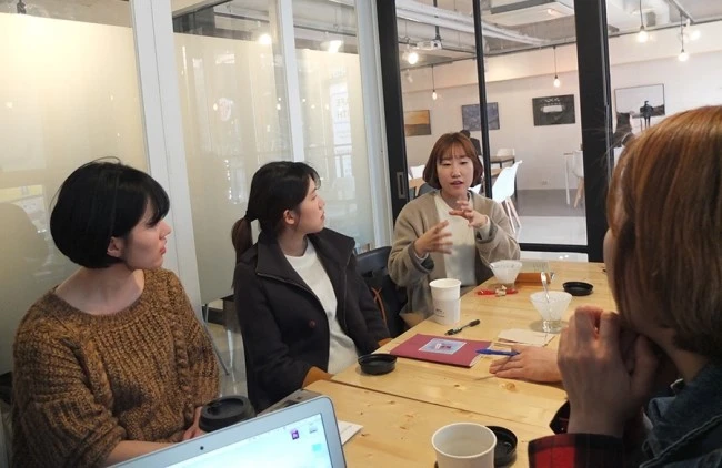 실제로 시장리뉴얼 사업을 해보신 실장님과 승훈님의 이야기도 듣고 아직 그런 사업을 경험해보지 못한 다른 디자이너들의 이야기도 간략히 들으면서 다소 아쉬웠던 부분들과 우리가 어떤 부분들에 대한 질문을 안고 광주로 떠나야하는지에 대해 조금 더 깊은 이야기를 나누고자 경성대 카페위드로 자리를 옮겼습니다.
