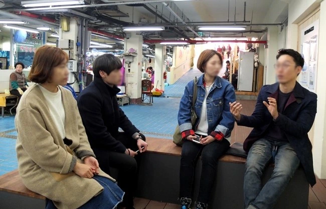 각자 흩어져 사진을 찍고 시장을 둘러본 뒤 잠시 쉼터에 앉아 기장시장에 대한 이야기를 나누어보았어요.