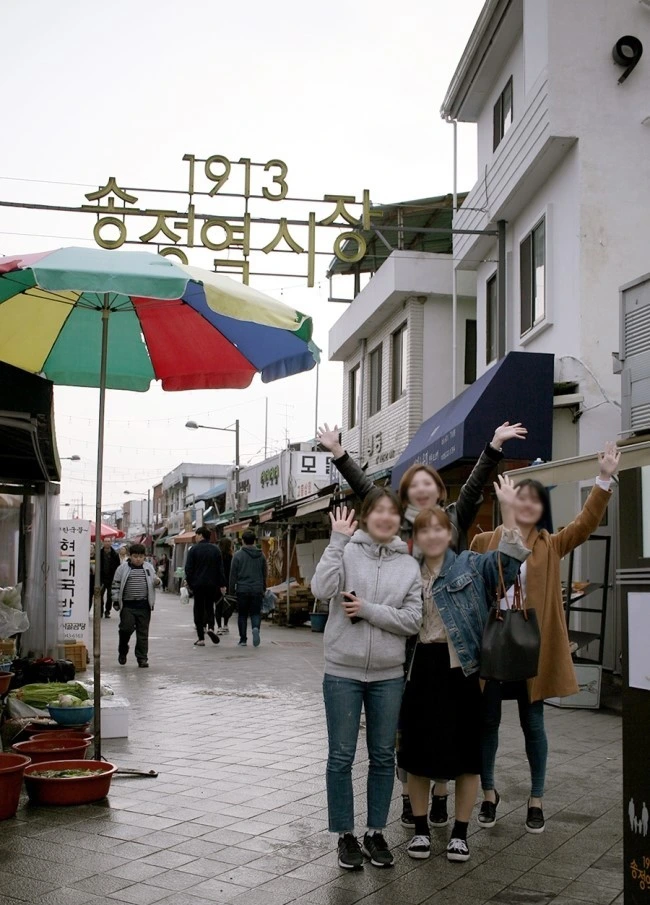 KTX가 개통되는 역 바로 앞에 있기 때문에 좀 더 관광지에 가까운 시장으로 리뉴얼을 하지 않았나 하는 생각입니다. 스콜레에서 배포한 문서에서도 시장의 기능을 되살리기보다는 '어떻게 사람을 시장으로 불러모을것인가?'하는 부분이 핵심질문이었거든요ㅎ 그래서 해외의 유명시장들을 벤치마킹하여 1913송정역시장 역시 단순히 물건을 사고파는 공간이 아니라 재미와 즐길거리를 제공하는 관광형 시장으로 재탄생 되었습니다.