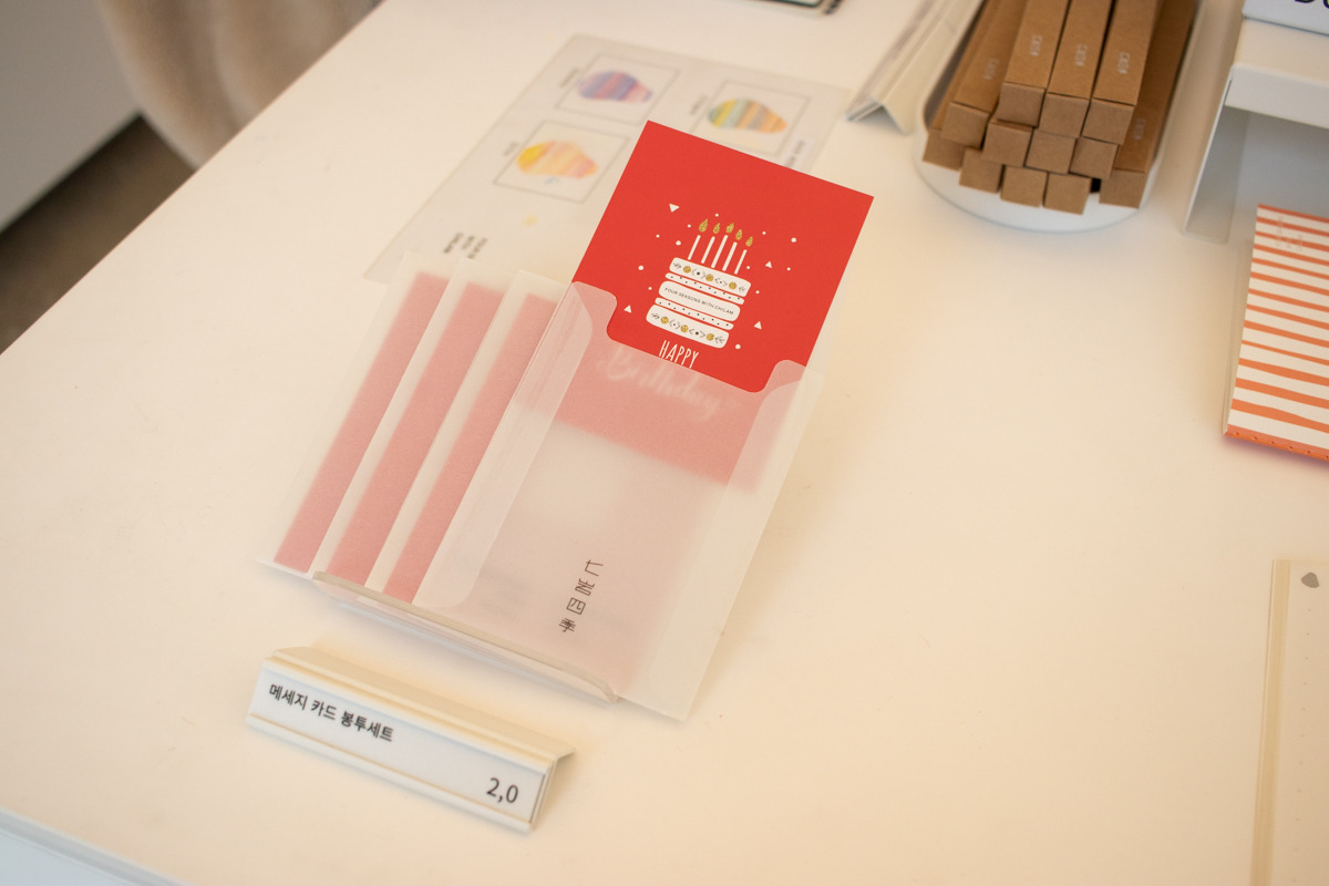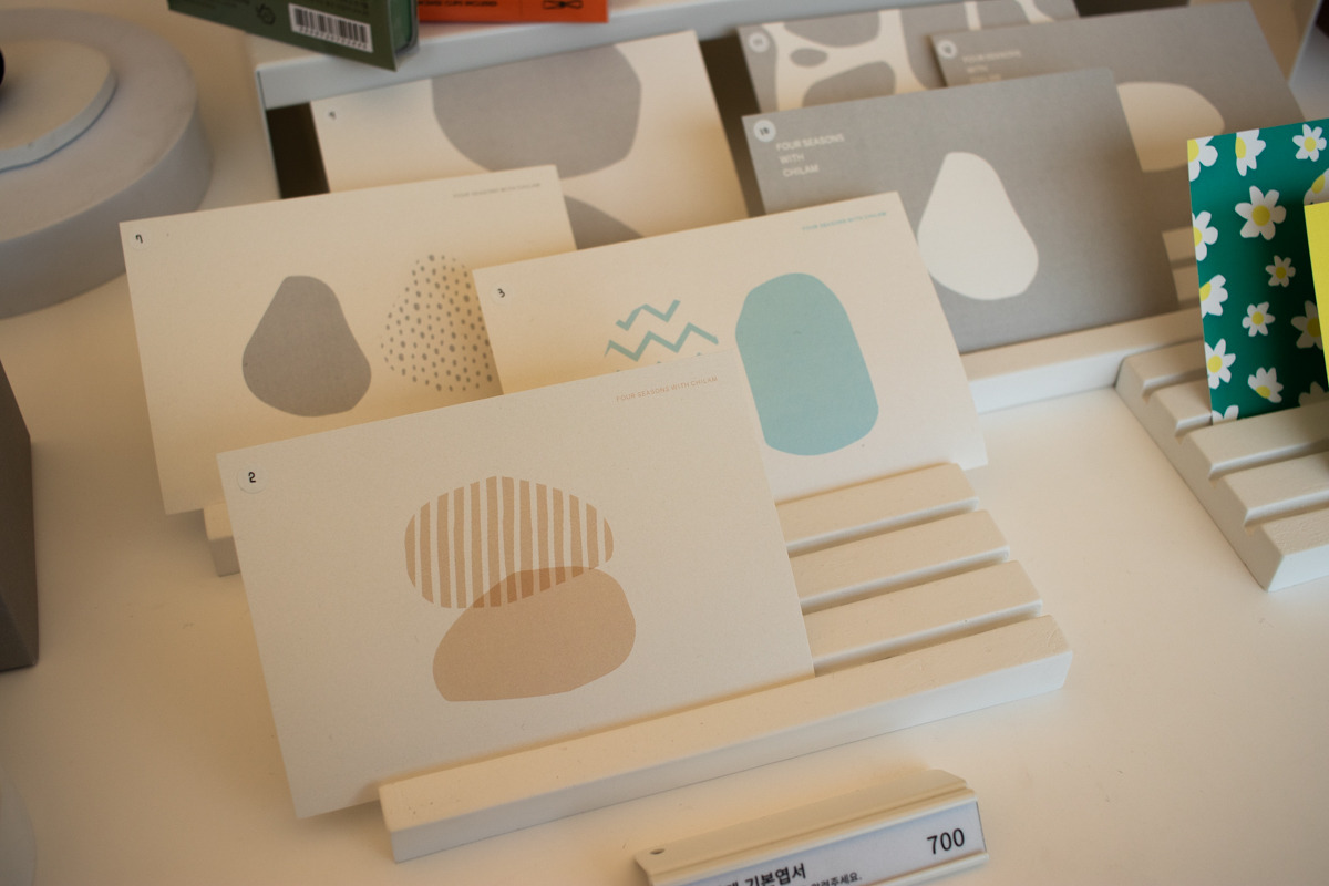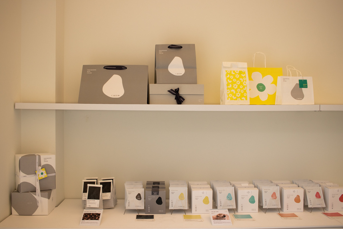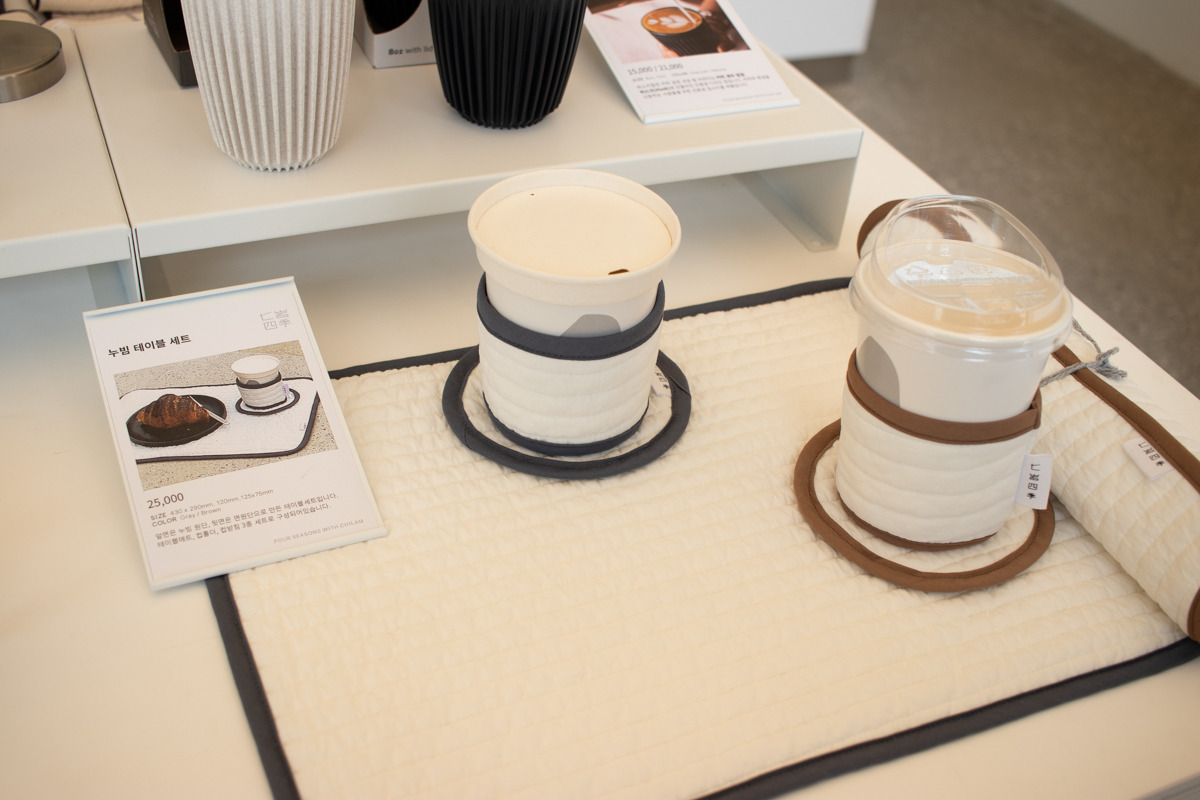 그리고 굿즈류는 일반적인 엽서, 스티커 외에도 커피와 베이커리의 특성을 살린 텀블러, 테이블 매트, 에코백 등을 활용하여 커피와 빵이 함께 하는 라이프스타일에 대해서도 다양한 방식으로 제안하고 있었다. 여느 카페가 그러하듯 빵과 커피가 함께 하는 순간 가장 먼저 떠오르는 브랜드가 되길 바라는 브랜드의 바람이 느껴지면서도 단순히 유행하는 아이템이 아니라 칠암사계의 무드에 잘 어울리는 디자인과 소재를 활용한 제품들이라 소장욕구를 불러일으킬 만큼 퀄리티가 높았다.