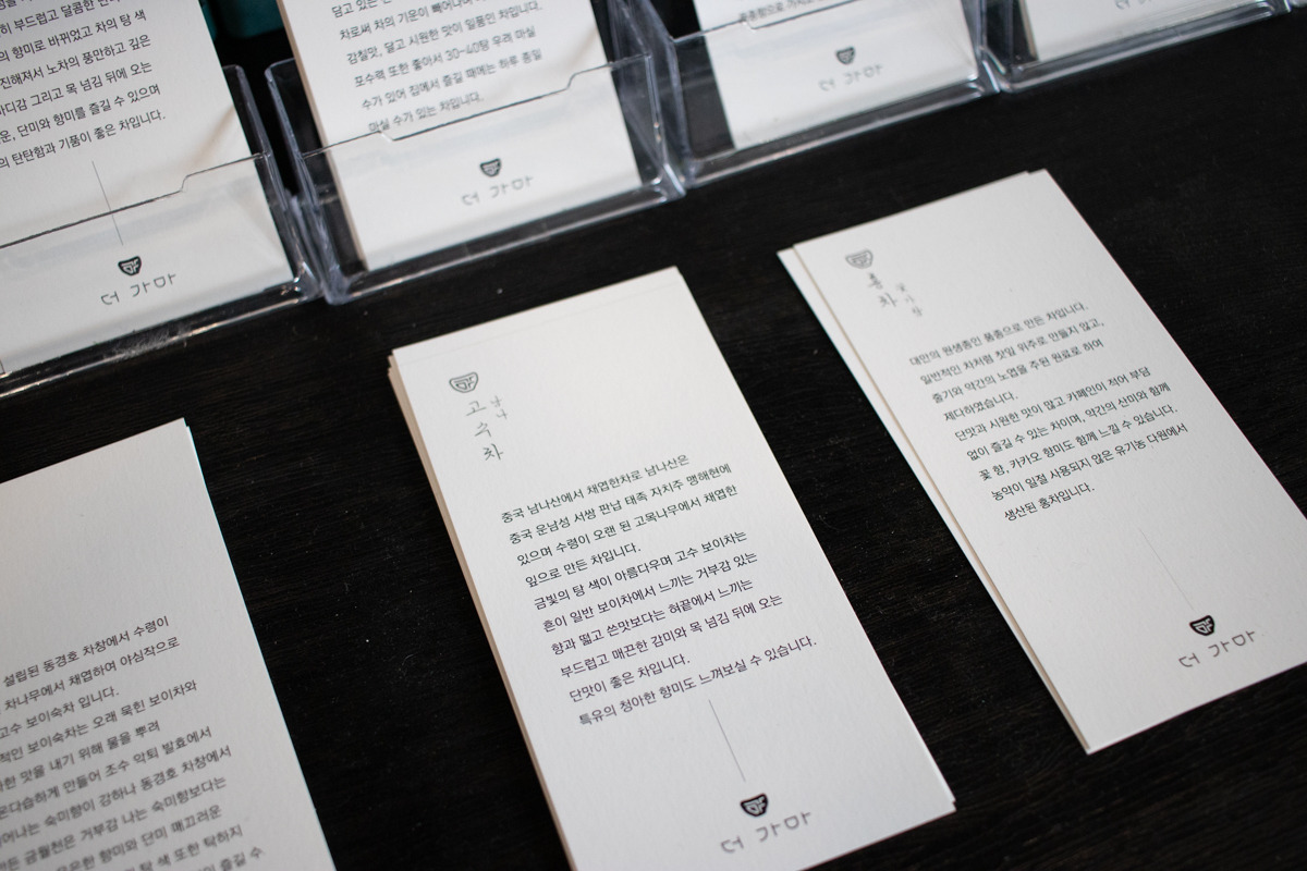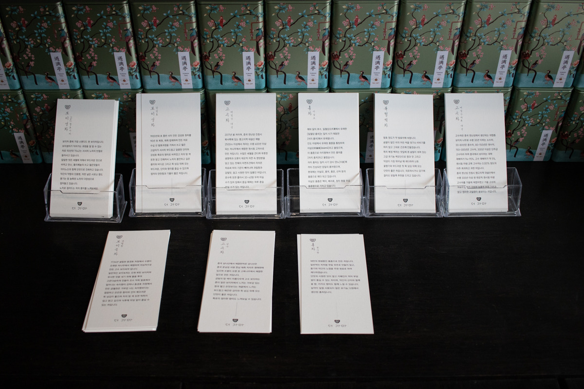 내부에는 다완에 대한 소개문구들과 판매되고 있는 차에 대한 설명도 친절하게 비치되어 있다. 칠암사계와 마찬가지로 곳곳에 브랜드에 대한 애정과 진심이 가득 느껴졌다.