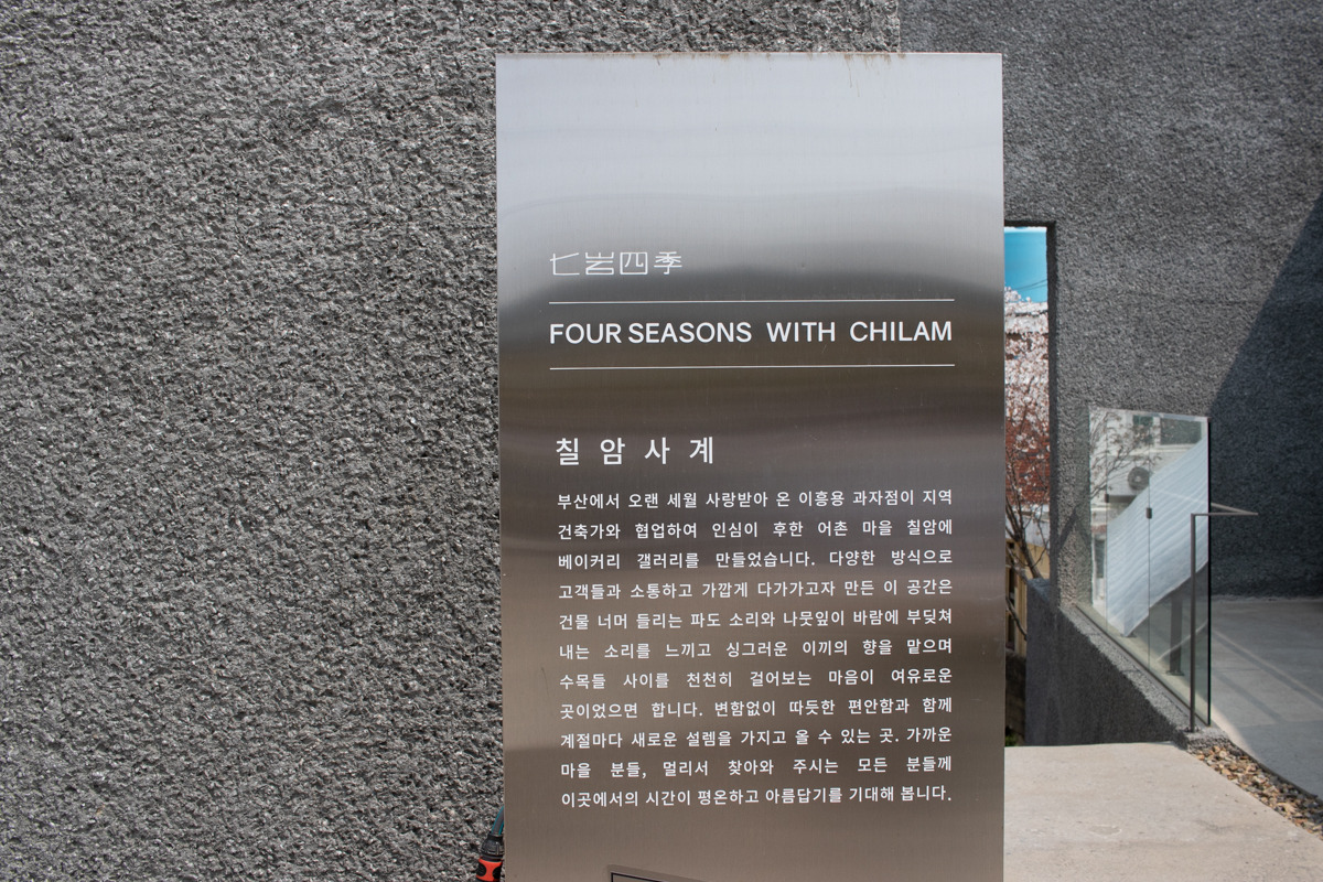 칠암사계는 2021년 여름, 칠암이라는 지역의 사계절을 콘셉트로 설계된 베이커리 갤러리 카페이다. 칠암사계는 부산사람들에게는 신세계 센텀시티 백화점 지하 1층에 위치한 베이커리로 익숙한 이흥용 과자점의 카페로 지역의 건축가인 고성호 건축가와 함께 협업하여 만든 공간이라고 한다. 별도의 홈페이지는 없어서 보다 자세한 내용을 찾아볼 수는 없었지만 공식 인스타그램은 운영 중이라 아래에 링크를 통해 여러 소식을 받을 수 있다.
