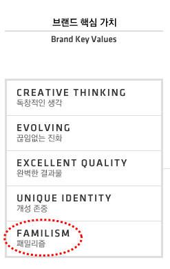“회사의 핵심 경영 철학은 '패밀리즘(Familism)'이다. 소속 아티스트 간에 깊은 음악적 유대와 자체 제작 시스템을 통해 보다 높은 수준의 콘텐츠를 생산한다"