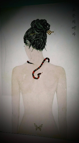 몸에 걸친 것이라곤 '뱀' 한 마리뿐인(샤넬 No.5도 입고 있으려나..?), 척추를 꼿꼿이 세운 이 여자에 대한 묘사는 이렇다.