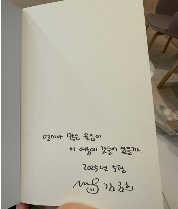 -'첫 여름, 완주' 김금희 작가의 싸인이다.