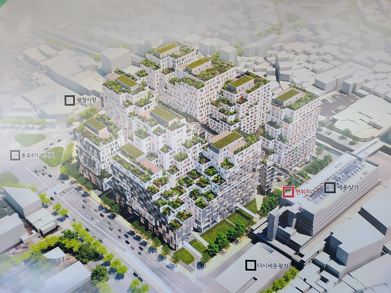 서울시는 나중에 세운상가 바로 옆 세운4구역 재개발 사업을 마무리한 뒤, 그 건물 옥상을 세운상가 옥상과 연결할 예정이다. 세운4구역 국제설계공모 당선작인 '서울세운그라운즈'(KCAP, 네덜란드)는 거대 건물에 다양한 높이의 옥상 정원을 삽입한 형태로, 세운상가 옥상에서도 다리를 건너 넘나들 수 있도록 했다. 옥상끼리의 연결은 공간의 이용도를 높이면서 도시에 활력을 불어넣는 작업이 될 수 있다. 옥상을 매개로 한 '공중 산책로'를 만드는 거다. 과거 서울역 고가차도를 개조해 퇴계로 일대 건물들과 연결한 '서울로7017'이나, 또 그것이 본보기로 삼은 뉴욕 '더 하이라인' 정도를 떠올릴 수 있다.