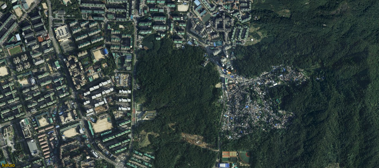 서울시 노원구 중계본동 104번지 일대 항공사진. 녹지에 파묻힌 곳이 백사마을. ⓒ카카오맵·국토지리정보원