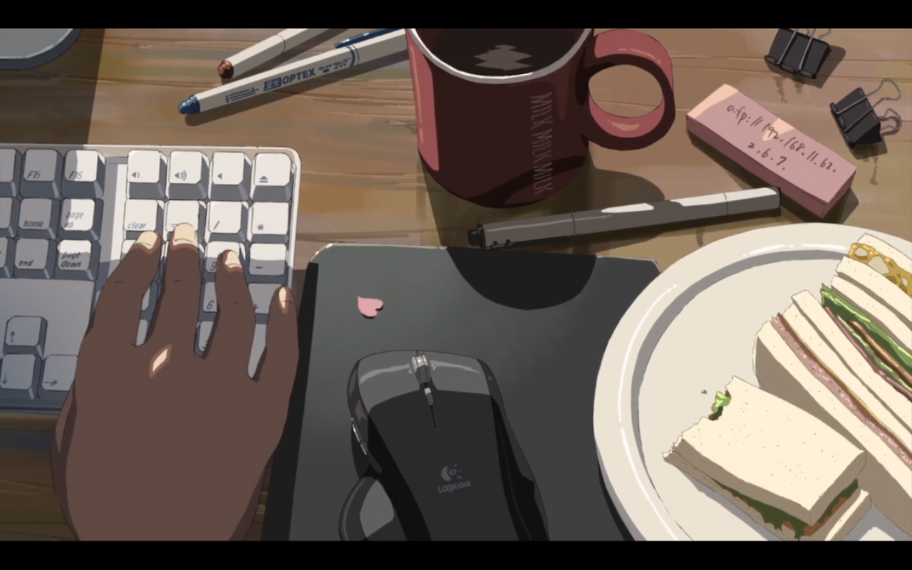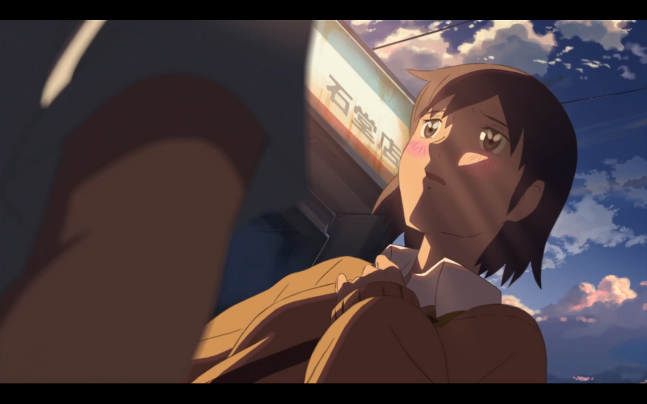 <초속 5센티미터>의 감독 신카이 마코토의 사랑은 무언가 가슴 아프다. 동감독 작품인 영화 <너의 이름은.> 속 미츠하와 타키의 사랑 역시 으레 고백하고 사귀는 그런 사랑은 아니다. 간절함의 기나긴 터널 속 어둠에서 한 줄기 빛을 쫓아 맺게 되는 사랑. 이것은 관객으로 하여금 지난 첫사랑의 추억을 불러일으키기에 충분하다. 신카이 마코토의 고질적인 취향 탓인지, 전작인 <초속 5센티미터> 역시 그러하다. 다른 점은, 초속 5센티미터는 첫사랑의 터널을 지나 온 이들에게 자꾸 뒤돌아 그때 보았던 빛을 찾게 한다. 터널 속에 빛이 있을 리 만무하지만.