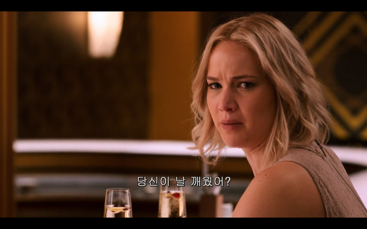 120년이 걸리는 긴긴 여정에 다른 행성으로 이주하는 사람들은 동면기에 듭니다. 냉동인간으로 120년을 버티면 새로운 곳에 정착할 수 있는 거죠! 하지만 짐 프레스턴(크리스 프랫이 연기한)은 기기 고장으로, 도착을 90년이나 남겨두고 깨어나게 됩니다. 동면기가 끝난 짐은 이제 늙어가는 것이죠. 과연 90년을 버텨서 새로운 곳까지 갈 수나 있을까요. 가더라도 한 110살은 될 것입니다. 다시 잠에 들 수 없던 짐은 2년을 혼자 지내다, 자고 있는 오로라 레인(제니퍼 로렌스가 연기한)을 우연히 보게 됩니다. 딱, 짐의 스타일인가 봅니다.