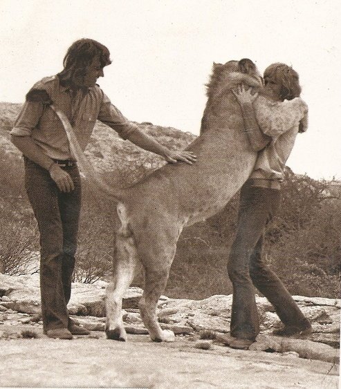. 사자는 오랜만에 재회하는 인간 친구들에게 앞발을 들어 끌어안고 마치 인간처럼 감격의 포옹을 했으며 더 인상적인 것은 사자가 포옹한 후 두 발로 친구들의 어깨를 토닥거렸다. 그 후 자신의 사자 가족들을 데려와 소개를 했다고 한다.