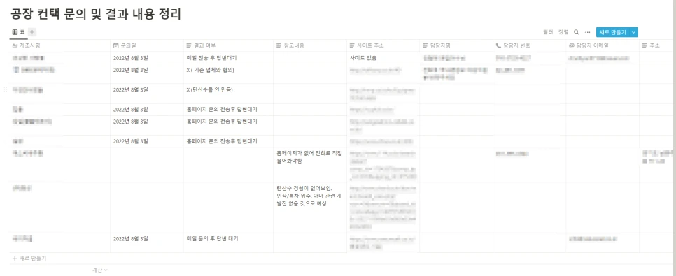 "음료 제조 업체, 음료 OEM 공장, 음료 OEM 업체, 캔음료 OEM, 캔음료 제조 공장, 탄산수 제조 업체" 등 생각나는 모든 단어를 적어보고, 홈페이지가 나오는 업체들을 정리했다.