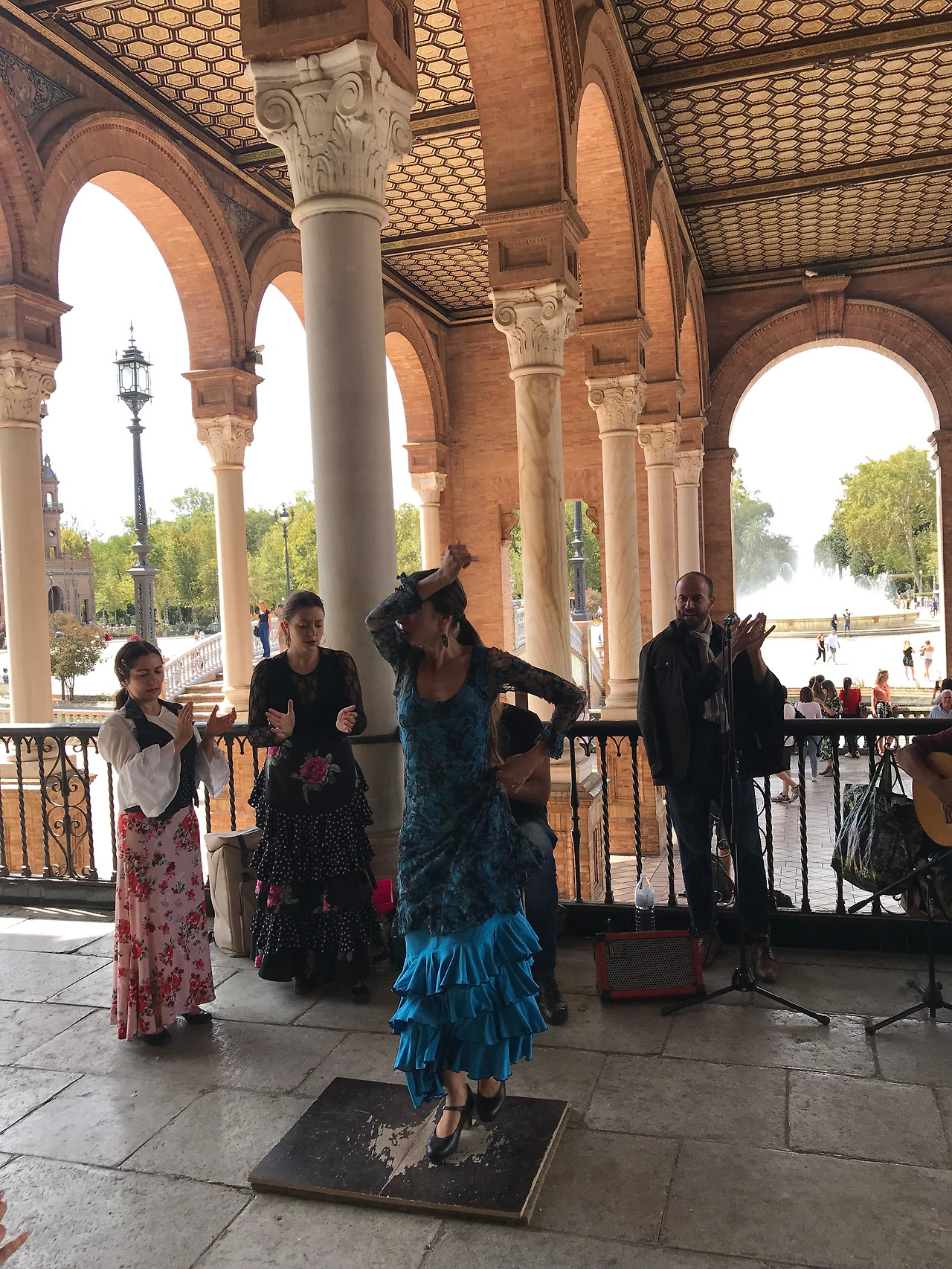 세비야는 플라멩코의 본 고장이다. 그리고 나는 취미로 토요일에 플라멩코를 배운 지 벌써 5년이 넘었다. (출장이나 주말 출근이 있을 땐 많이 쉬기도 했고, 지금도 당분간 쉬고 있지만) 2014년엔 아예 단기 플라멩코 클래스를 등록하여 배우고 오기도 했고, 이번 여행에서도 공연만 다섯 번을 보고 왔으며, 거리 공연까지 하면 셀 수 없다. (가끔 ‘춤 아는 사람 없냐’고 물으면 한 곡 같이 추기도 한다.)