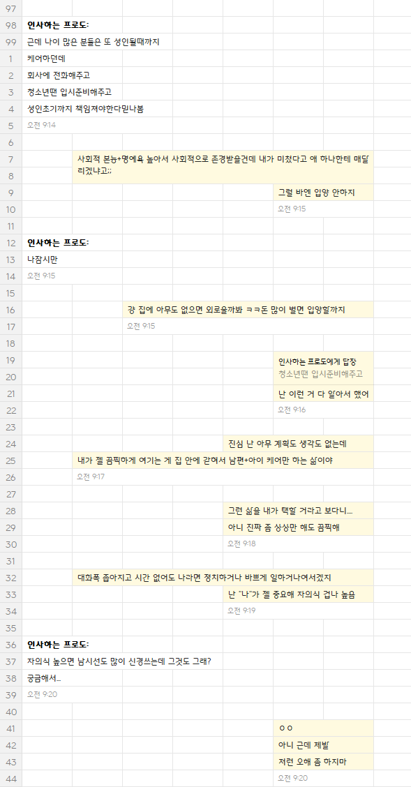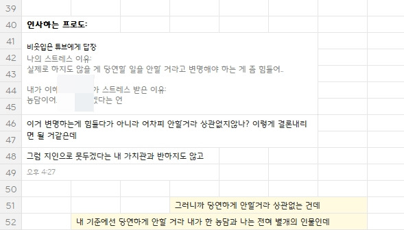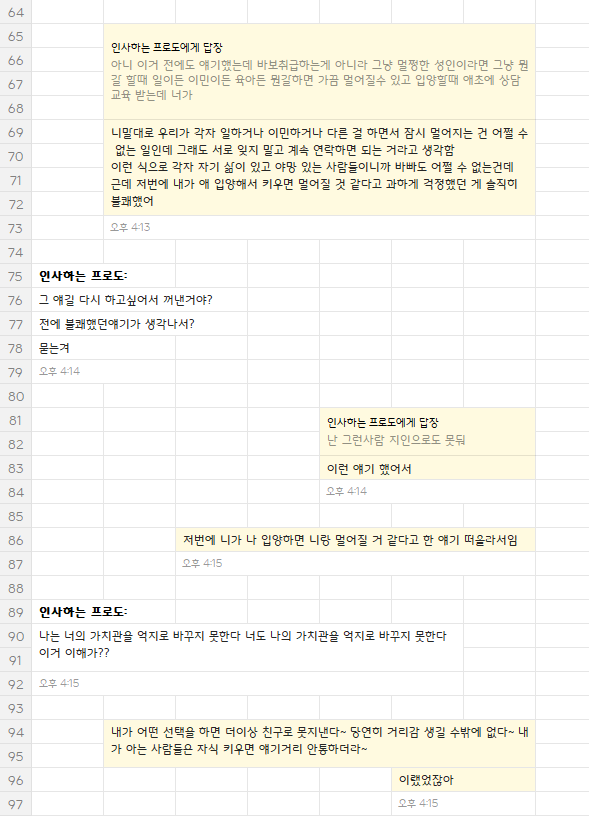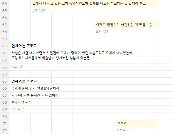 추가적으로, B와 나눴던 카톡 원문을 올린다.