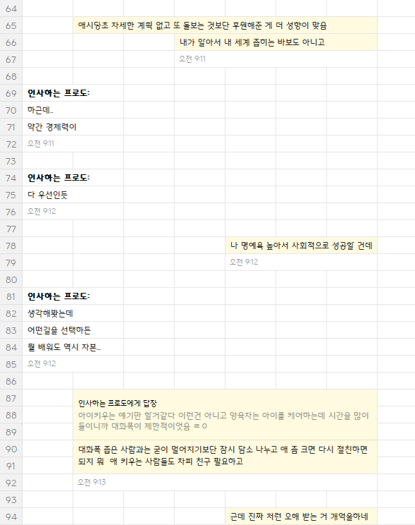 "아이 키우려면 그 아이한테 온 시간을 다 쏟아야 해. 그렇지 않으면 아동학대야. 너 그럴 자신 있어?"