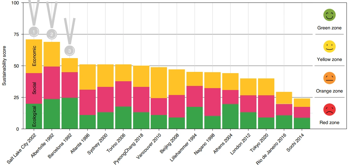 출처 : 네이쳐 논문 An evaluation of the sustainability of the Olympic Games 링크는 세번째 문단 속