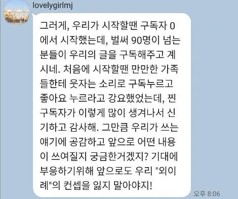 그랬구나.. 그 초심을 잃지 않고 넌 8여 개월이 지난 오늘 정말 멋진 글을 쓰고 있어!!!