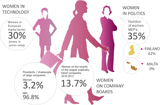 할당제에도 불구하고 유럽 전체의 여성의 사회, 정치 참여도는 여전히 낮다. (출처: debatingeurope.eu)